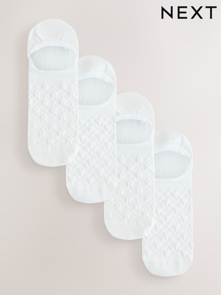 White Heart/Floral Textured Invisible Socks 4 Pack