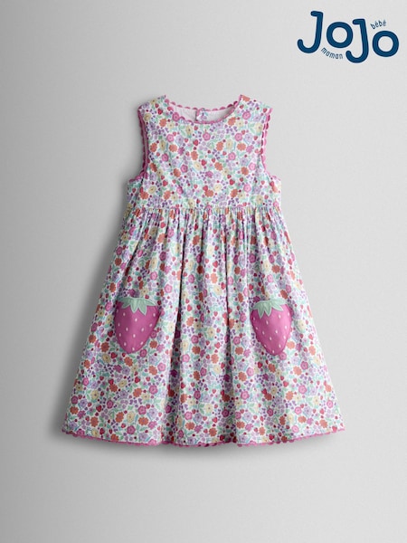 JoJo Maman Bébé Pink Strawberry Appliqué Bow Dress