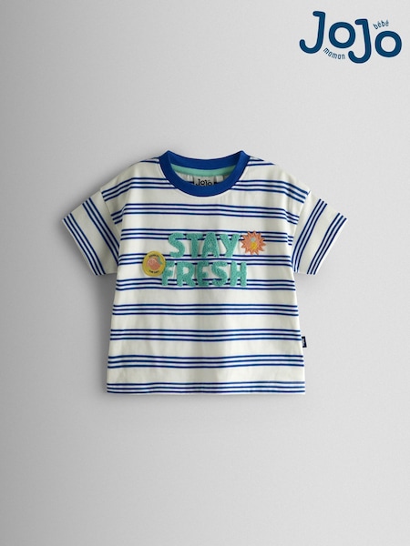 JoJo Maman Bébé Blue Stripe Graphic T-Shirt