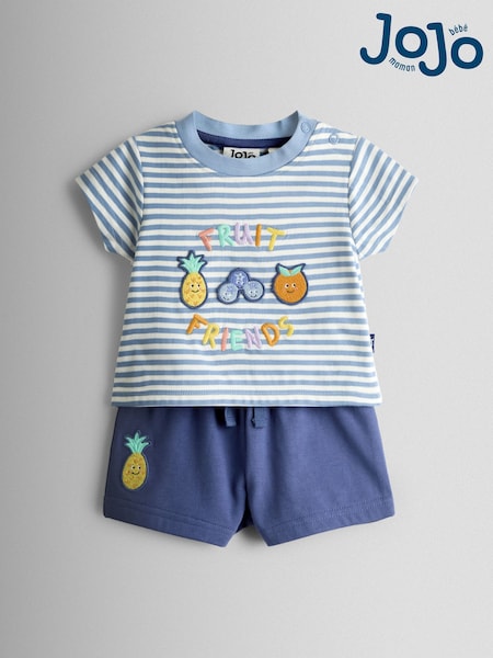 JoJo Maman Bébé Blue Fruit 2-Piece Slogan T-Shirt & Shorts Set