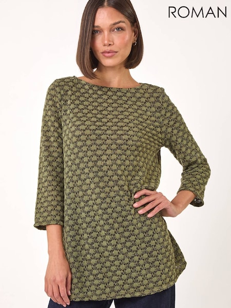 Roman Metallic Jacquard Cowl Neck Stretch Tunic