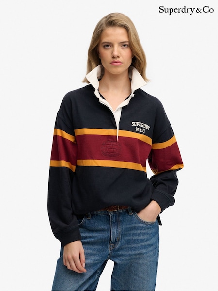 Superdry Navy & Red Stripe Heritage Stripe Rugby Top