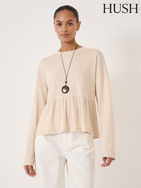 Simply Be Natural Contrast Scallop Trim Long Sleeve Polo Top