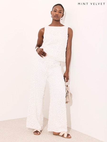 Mint Velvet White Sequin Wide Beach Trousers