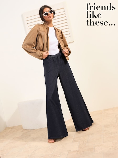 Light Blue Pull on Lightweight Denim Wide Leg Crop Jeans