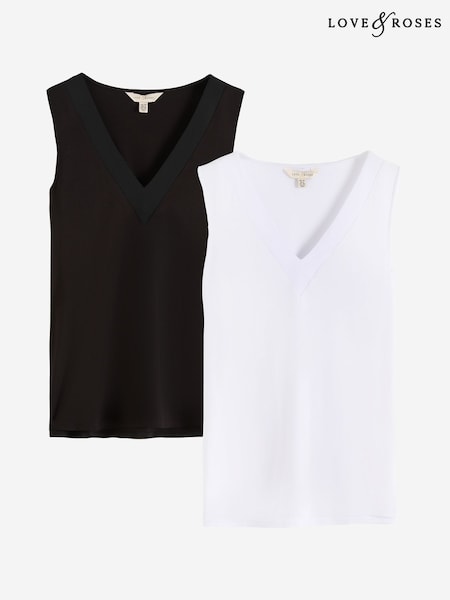 Black/White Square Neck Vest 2 Pack