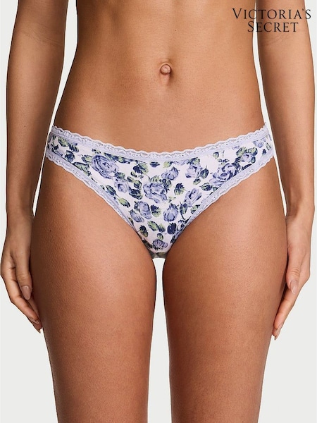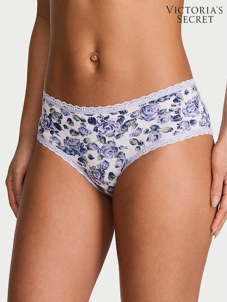 Victoria's Secret Lavender Purple Floral Cheeky Cotton Lace Trim Knickers