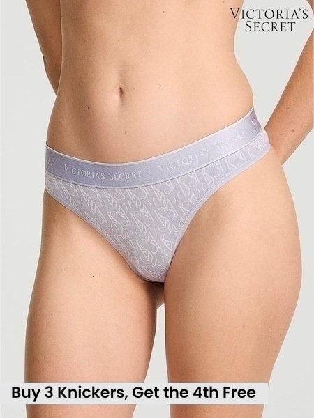 Victoria's Secret Icy Lavender Purple Lockup Thong Logo Knickers