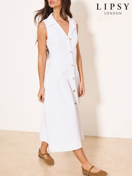Lipsy White Denim Drop Waist Midi Dress