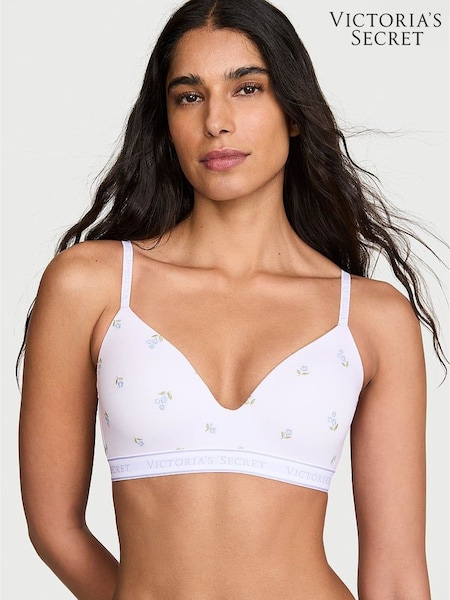 Victoria's Secret White Floral Lightly Lined Non Wired Cotton Logo Embroidered Bra