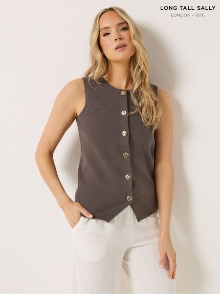 Long Tall Sally Brown Button Vest Top