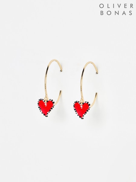 Oliver Bonas Red Vita Enamel Heart Charm Hoop Earrings