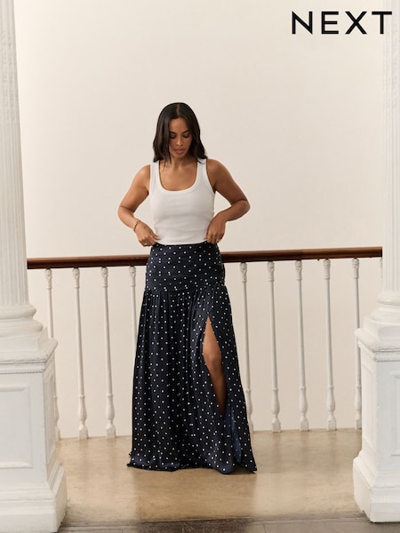 Ecru/Navy Stripe N. Premium Linen Cotton Blend Maxi Skirt