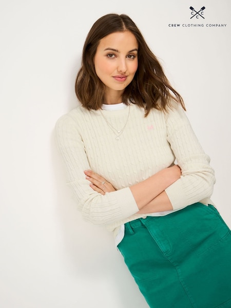 Crew Clothing Cream Heritage Cable Crew Neck Jumper