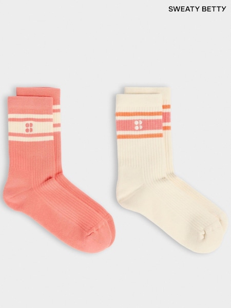 Sweaty Betty Cream Lifestyle Ribbed Crew Socks 2 Pack