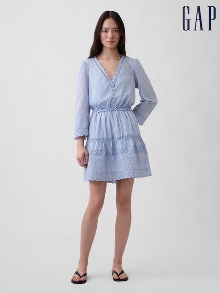 Gap Blue Check Gingham Sheer Midi Shirt Dress