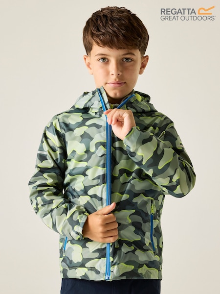 Regatta Green Junior Waterproof Printed Lever Jacket