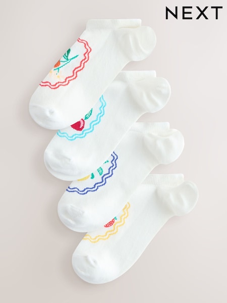 White/Bright Fruits Invisible Socks 4 Pack