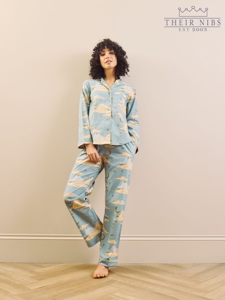 Their Nibs Blue Cotton Traditional Pyjamas Cloudy Skies