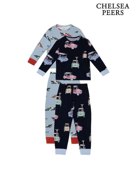 Chelsea Peers Blue Kids Frog Rally Safari Joyride Print Long Pyjamas Set 2 Pack