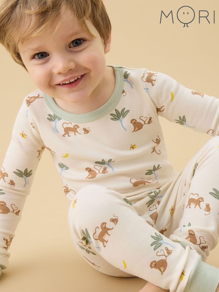 MORI Cream Dinosaur Print Supersoft Dinosaur Long Sleeve Pyjama Set