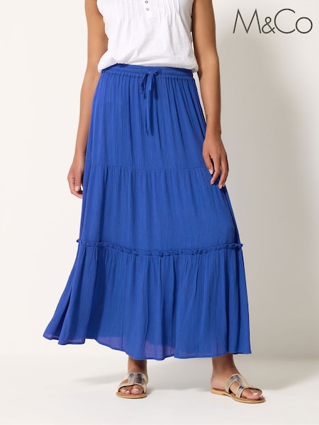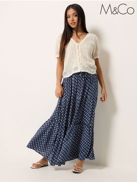 M&Co Blue Aztec Print Tiered Maxi Skirt