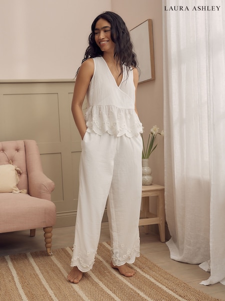 Laura Ashley Cream Embroidered Detail Cotton Pyjamas Set
