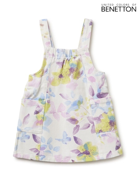 Benetton White Printed Dungaree Dress