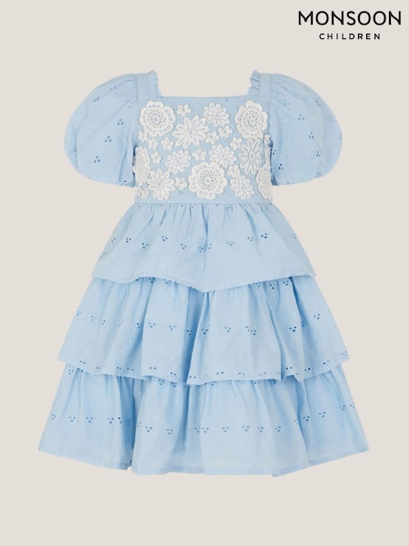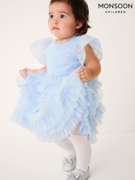 Monsoon Blue Baby Floral Broderie Puff Sleeve Party Dress