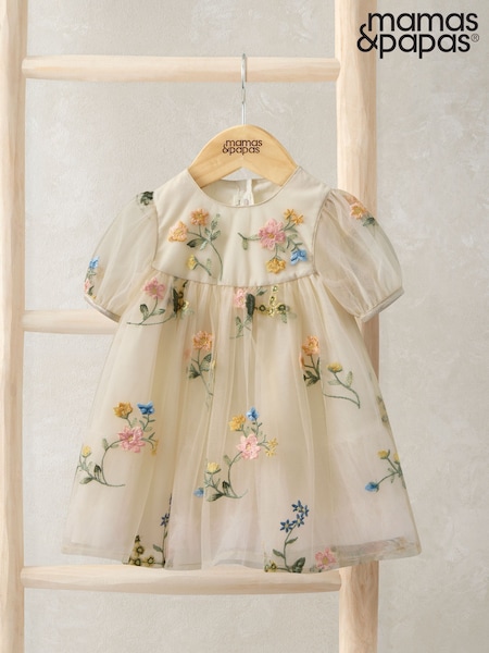 Mamas & Papas Cream Floral Mesh Dress