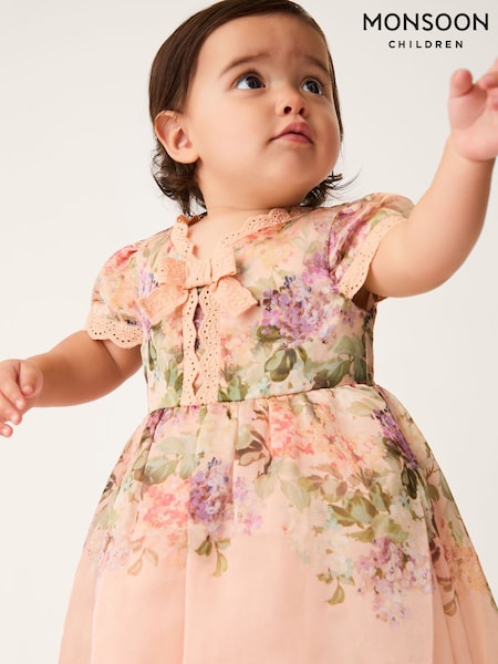 Monsoon Orange Baby Alma Floral Print Lace Dress