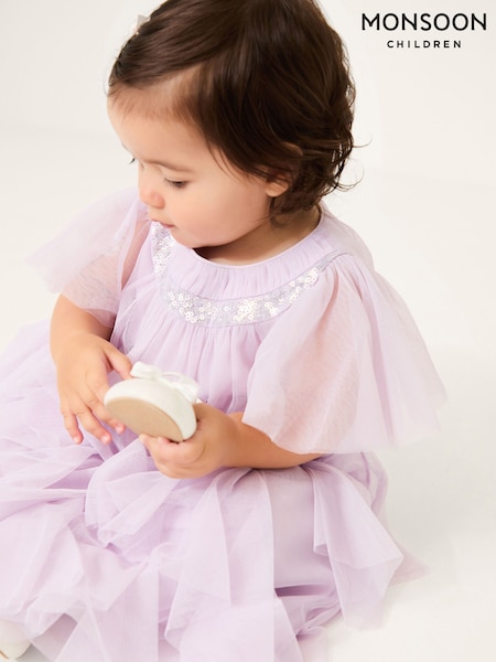 Monsoon Purple Nessa Sparkle Collar Waterfall Dress