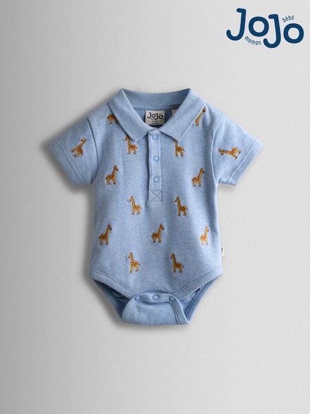 JoJo Maman Bébé Blue Giraffe Embroidered Polo Body