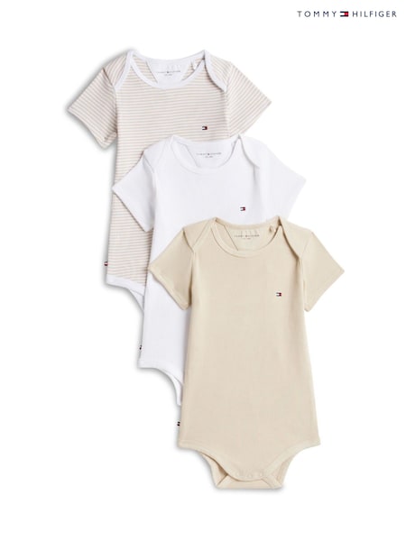 Tommy Hilfiger White Ribbed Bodysuits Gift Box 3 Pack