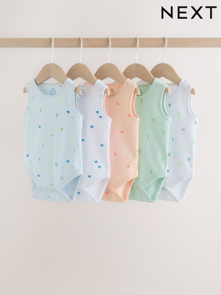 Blue 5 Pack Baby Bear Vest Bodysuits