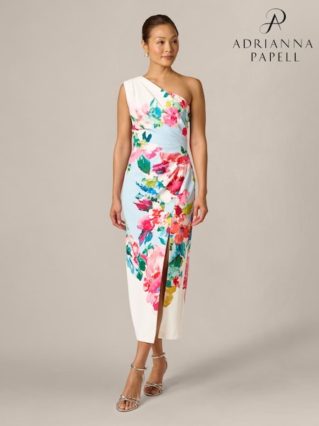 Adrianna Papell Blue One Shoulder Border Gown