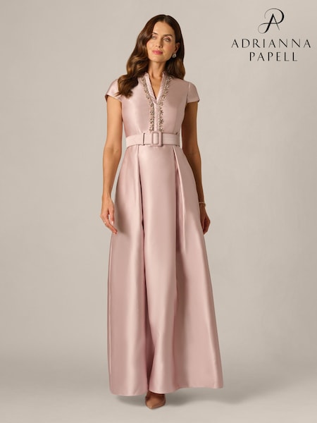 Adrianna Papell Pink Mikado Belt Gown
