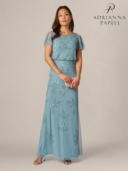 Adrianna Papell Light Blue Bead Blouson Long Dress