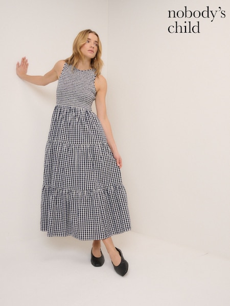 Nobodys Child Navy Gingham Charlie Sleeveless Tiered Skirt Midaxi Dress
