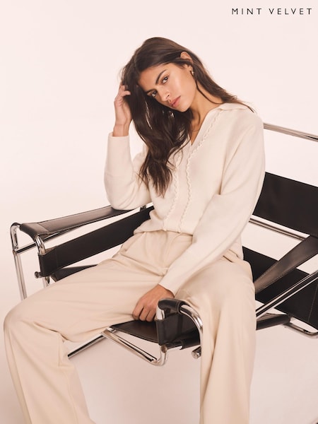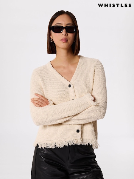 Sosandar White Textured Knit Gold Button Detail Cardigan
