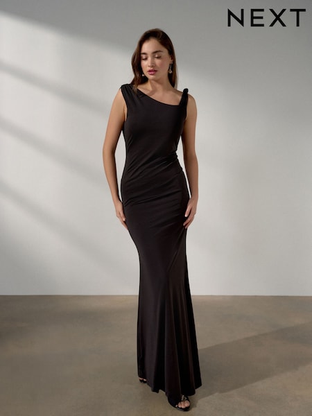 Jolie Moi Black Fit and Flare Jersey Midi Dress