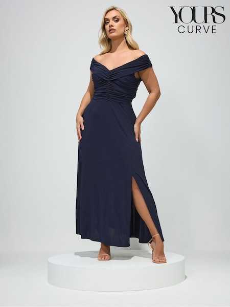 Yours Curve Blue London ITY Gathered Bardot Maxi Dress