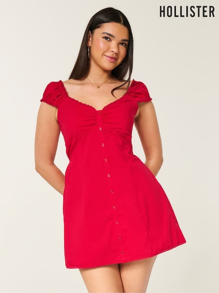 Hollister Red Cap Sleeve Button Through Mini Dress