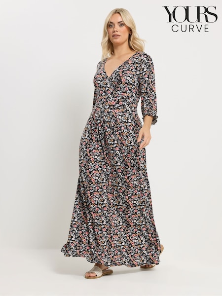 Yours Curve Black Floral Wrap Dress