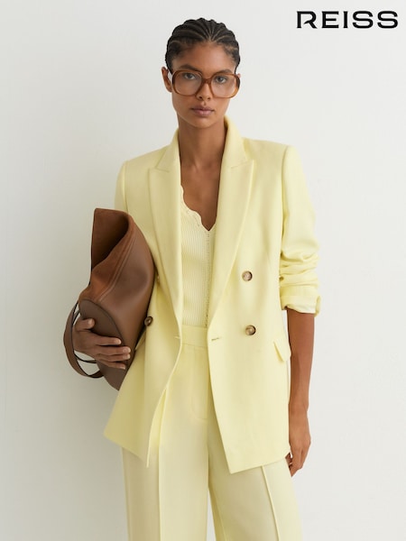 Reiss Yellow Magda Double-Breasted Peak-Lapel Suit Jacket