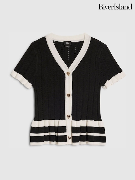 River Island Black Stripe Peplum Polo Cardigan