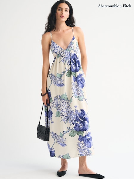 Abercrombie & Fitch White Bra-Free V-Neck Flowy Maxi Dress