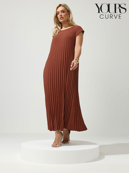 Yours Curve Brown London Pleated Maxi Dress