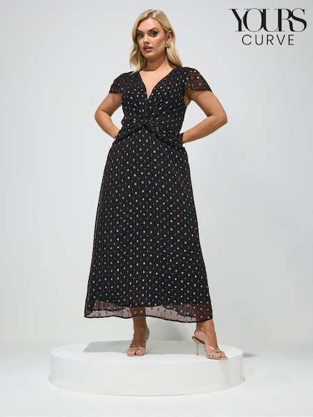 Yours Curve Black London Dobby Twist Front Dress