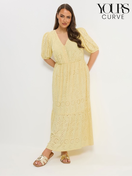 Yours Curve Yellow Broderie Anglaise Tiered Maxi Dress